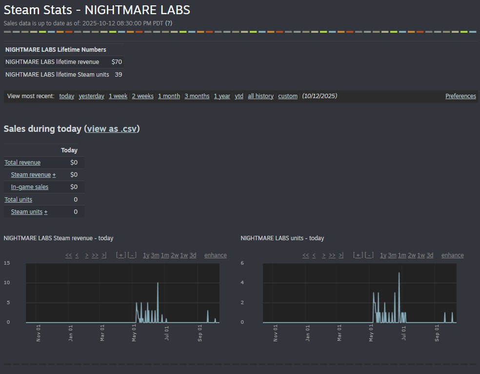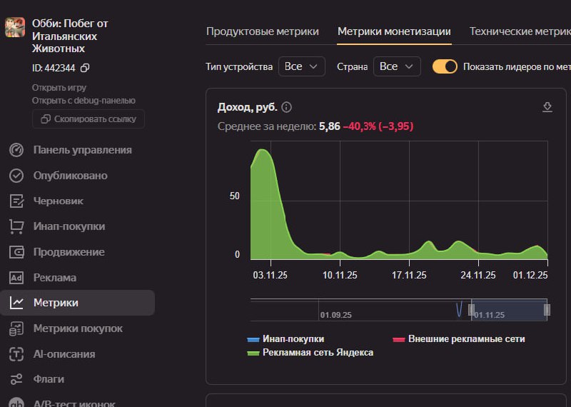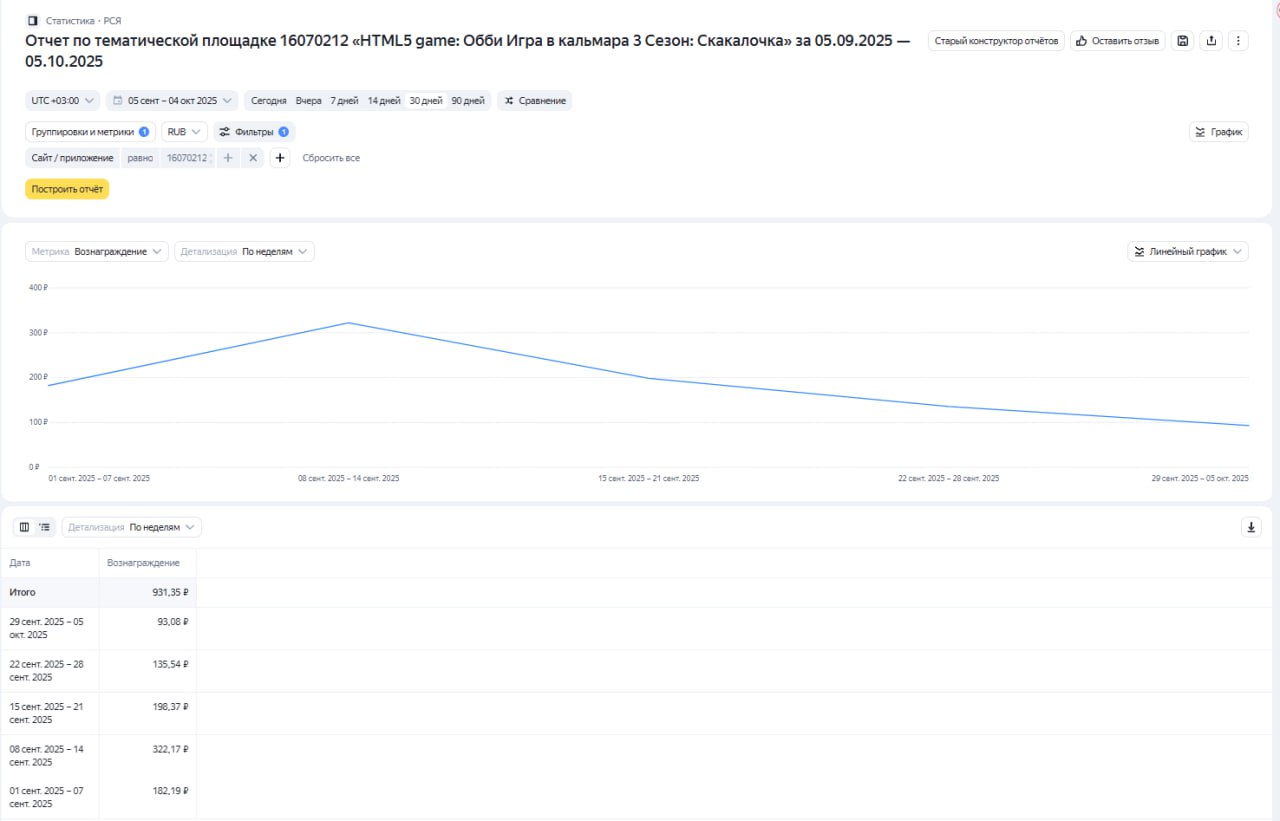 Доход за последние 7 дней : 900 рублей. Доход с момента выпуска игры (25 августа ) 9800